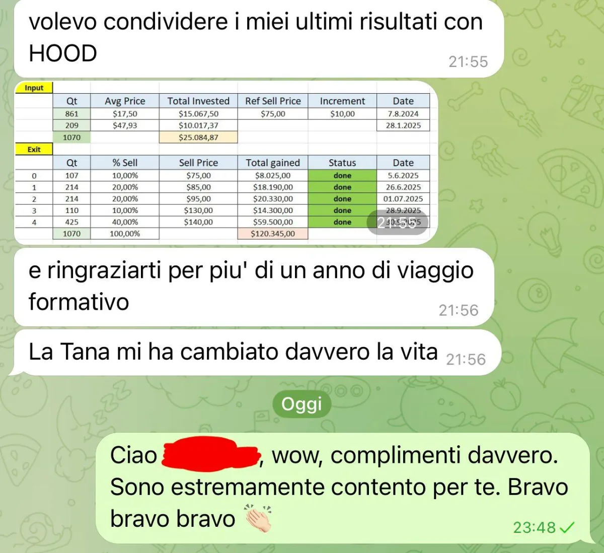 live private settimanali, dove puoi farmi domande specifiche e ottenere risposte immediate sui tuoi investimenti;